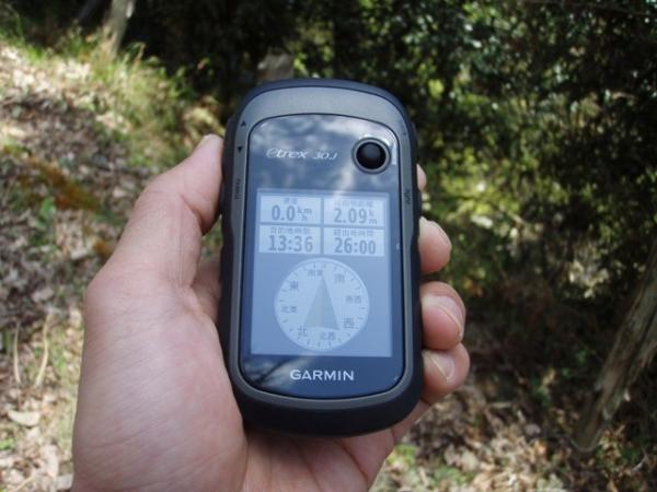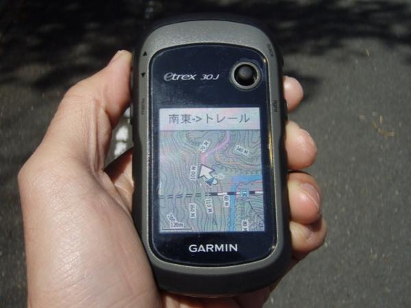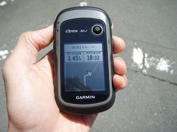 JR・保津峡駅を出た所で愛機の「GARMIN etrex30J」GPSを起動させ衛星を捕捉。新しく装備した地図ソフト「日本登山地形図TOPO 10M Plus V3」の新機能「登山道ルーティング」を試してみました。