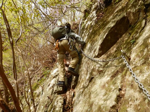 残置は豊富にあり、右側を登ります。