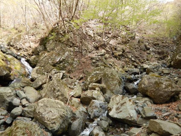 2つほど滝をクリアすると、二俣になります。