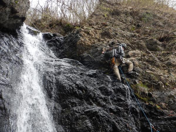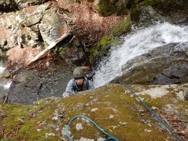 この滝はロープを出して、登りました。