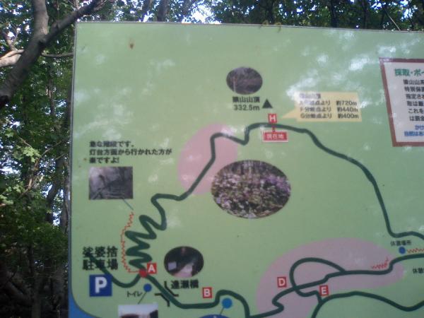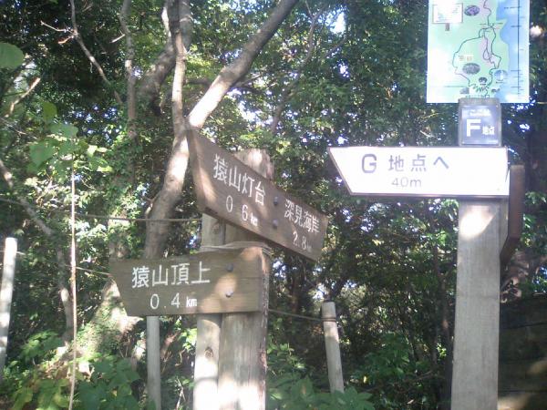 - 娑婆捨峠駐車場(10分)娑婆捨峠<トイレ>(15分) → 猿山岬灯台 (40分) → 猿山 (30分) → 娑婆捨峠駐車場