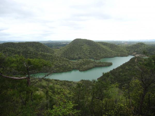 三草コースは昭和池を眺めながらの尾根づたいを歩きます。風も心地よいです。