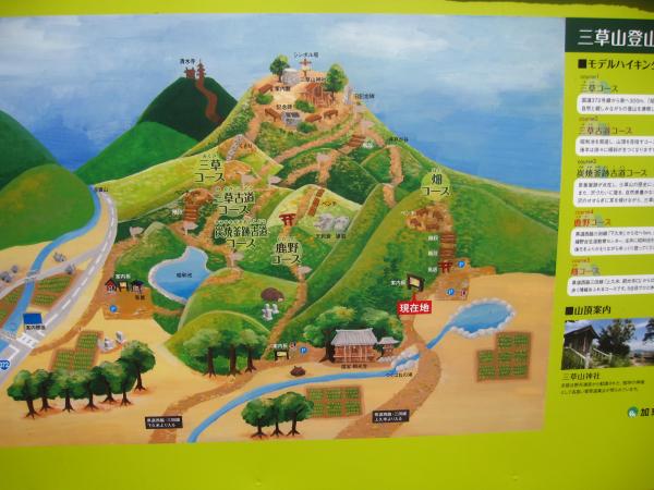 - 三草コース登山口70分山頂20分畑コース5合目15分畑登山口20分朝光寺30分鹿野登山口入口5分昭和池・山頂分岐30分駐車場