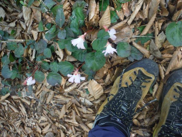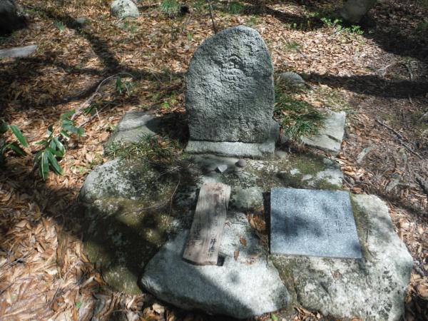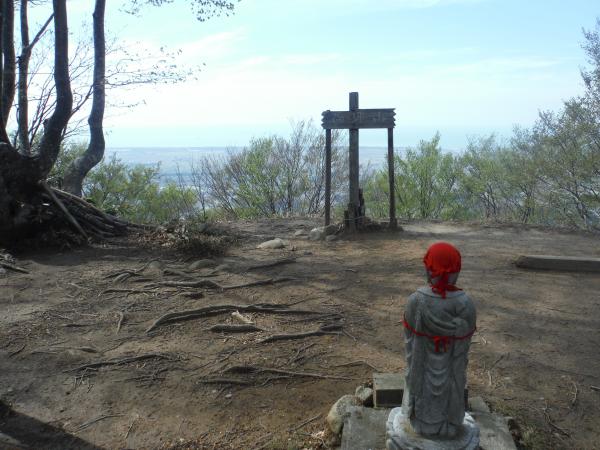 山頂までは展望台からすぐですが、再び距離を稼ごうと思って今度は蔵王集落側の史跡・蔵王権現跡まで行ってみました。こちらのコースはアップダウンの繰り返し、歩き応えのある道でした。いろいろ道草をして高坪山に漸く至り、日本海と山頂のお地蔵様に手を合わせ、今度は蔵王コースを下ります。最後の急な階段を下ると大沢に到着、汗だくの顔を沢の水でじゃぶじゃぶと洗いました。沢のある山では必ずやっちゃいます。柄杓が置いてあり、後で調べたら飲んでも大丈夫だったようです。