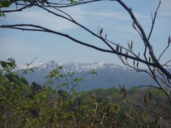車窓から見える残雪の山々は粟ヶ岳、五頭山、二王子岳と次々移り変わり、その背後からまだ真っ白な飯豊連峰がちらっと顔を覗かせていました。こんな風に移動しながら山を眺めるのも電車旅ならではです。