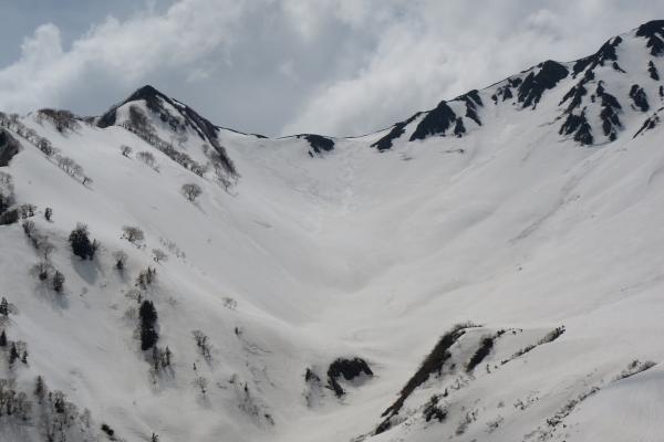 稜線部は夏道が露出していますが、沢筋は浄土沢が完全に埋没するほどたくさん雪がありました。