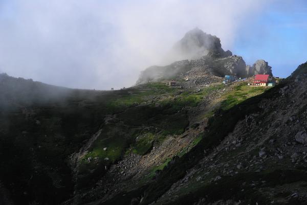 宝剣山荘に辿り着くとなかなかの混雑ぶり。小屋の方に聞くと、この天気でここで停滞している人が多く、奥の小屋は空いているということだったのでもうひと踏ん張りして駒ケ岳頂上山荘へ。ここではテントの方を除くと、学生グループとご夫婦一組と僕たちだけ。部屋も個室状態でとてもゆっくりできました。(中央アルプスで指定されているテント場はここだけなのでテントの方は注意してください。)