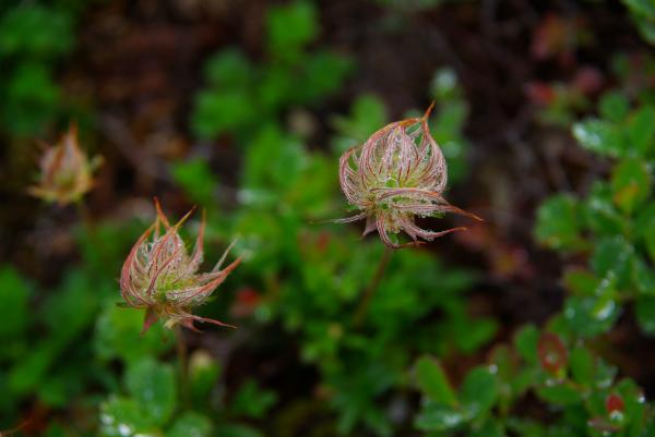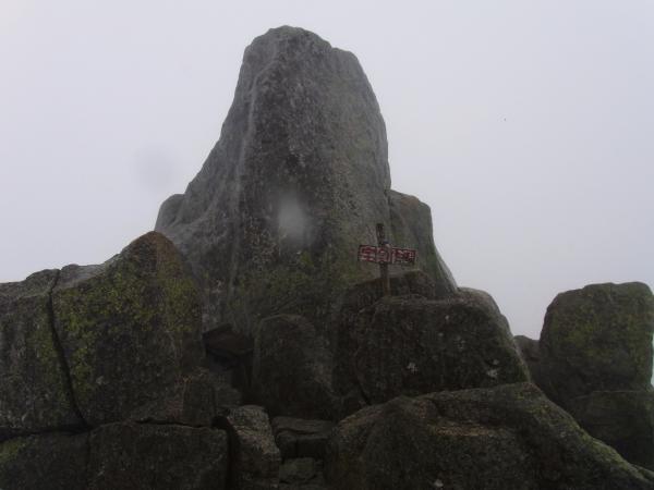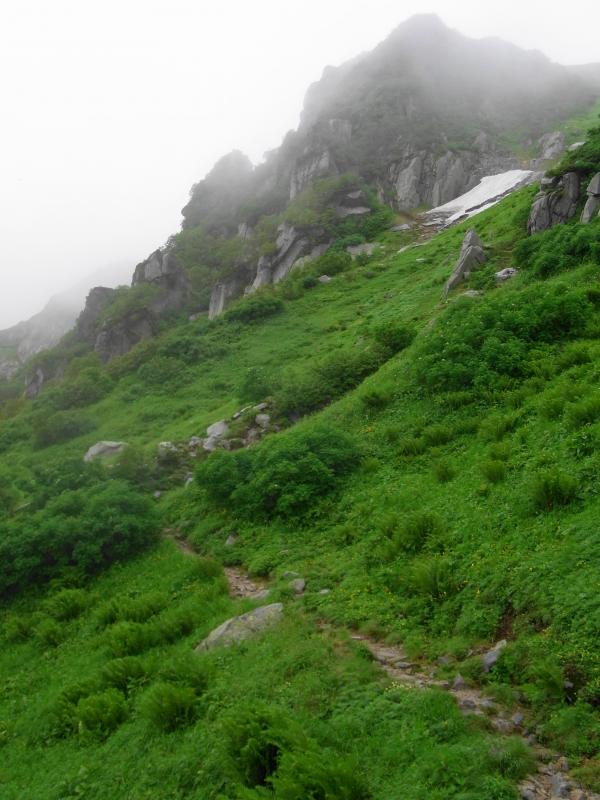 すでにガスで視界はほとんどなく霧雨だったので、最初から雨具とスパッツのお世話に・・