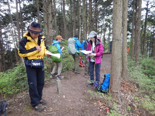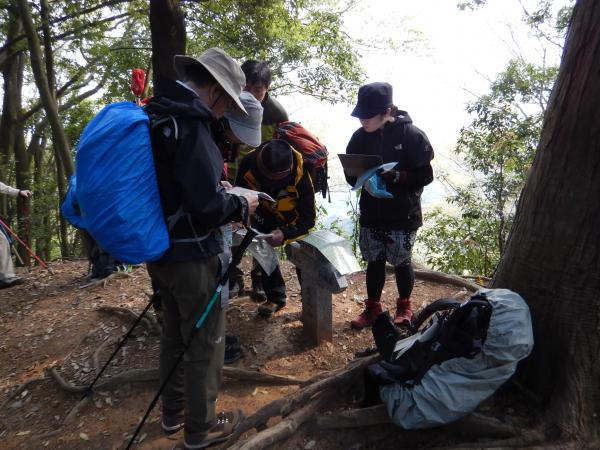 天覚山に到着後、ここでも講習を行い、地形図をしっかり確認しながら大高山に向かいます。