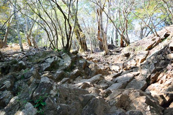 登山口の急な石階段を登ると今までとは様子が変わり、道が悪くなっているところもあるので注意が必要です。