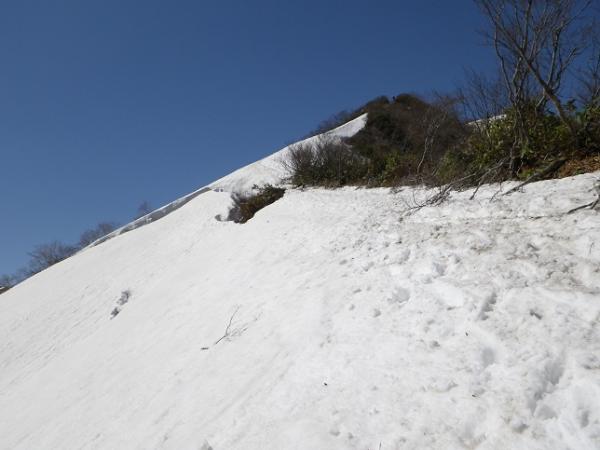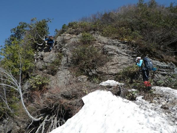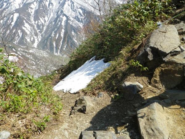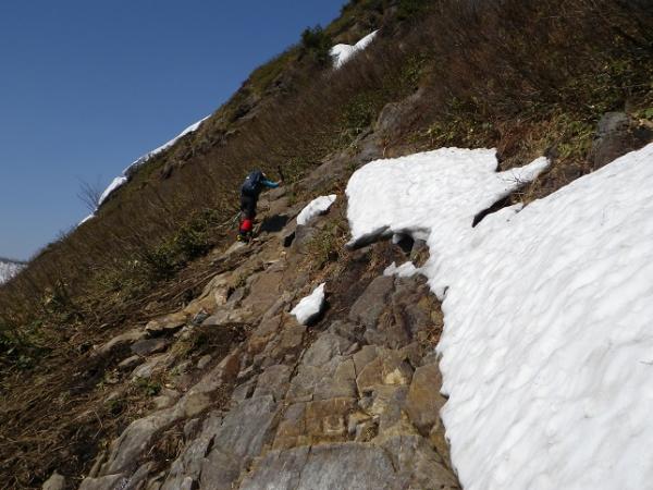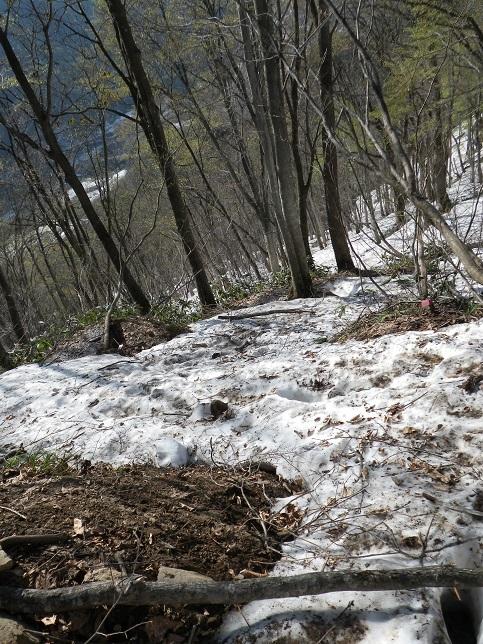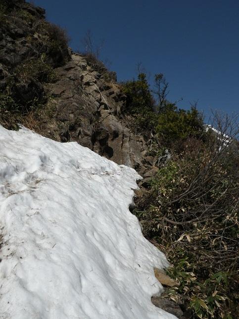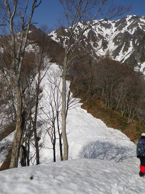 懺悔岩のあたりは入山者が多い為、踏み跡は複数あります、シュルンドはあいてますが、今回はまずい感じではなかったのでロープは出さず。雪の消え方でルート取りは変わるでしょう。