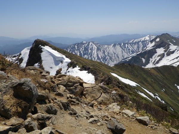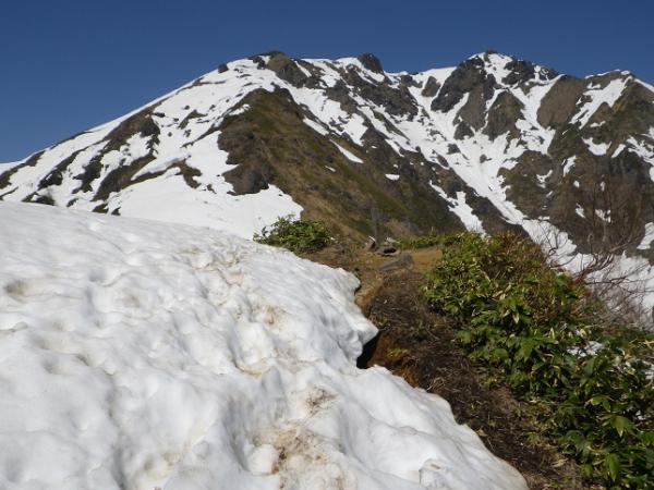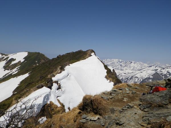 暑くて暑くてうだりました。アミノ酸必須です。周りの山々も、雪はだいぶ減り、下部は藪、藪。メジャールートなので西黒は大丈夫ですが。日焼けと藪の対策をする季節です。