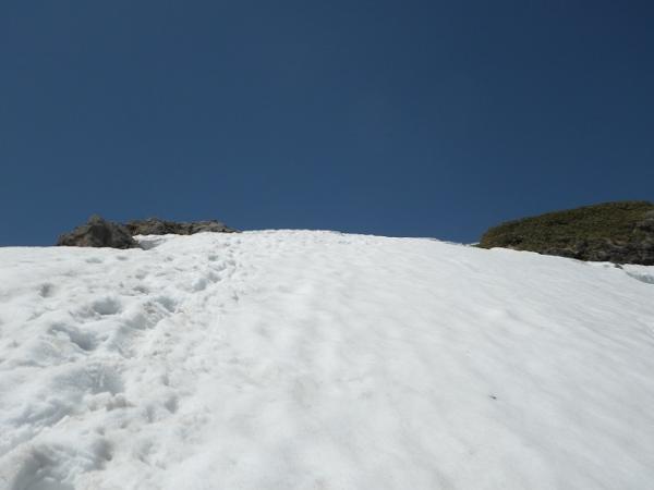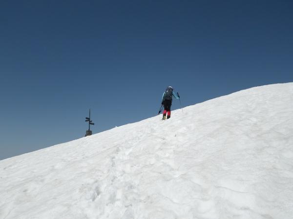- 下部はアイゼン不使用。ザンゲ岩あたりの雪の状態はシュルンド開きつつ、踏みあとはあり、気を付けてルート取りを。