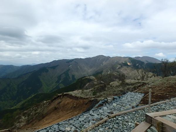 コース上にたくさんの小屋と広々とした休憩ポイントにベンチがあります。長い距離ですが、展望も良く飽きずに進めます。あいにく雲が多く、富士山は見られませんでしたが、尾根道では素晴らしい稜線の景色を見ることが出来ました。