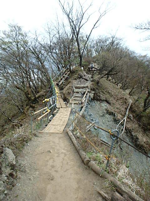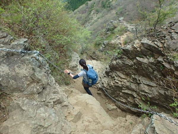 - 三ノ塔から新大日までは、烏尾山荘を過ぎたところにクサリ場とガレた岩場の下りがあります。