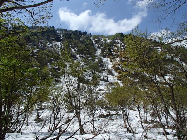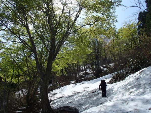 雪渓程度の里山と思っていたのですが、残雪はかなりあり雪山でした!