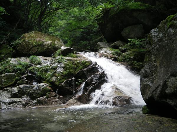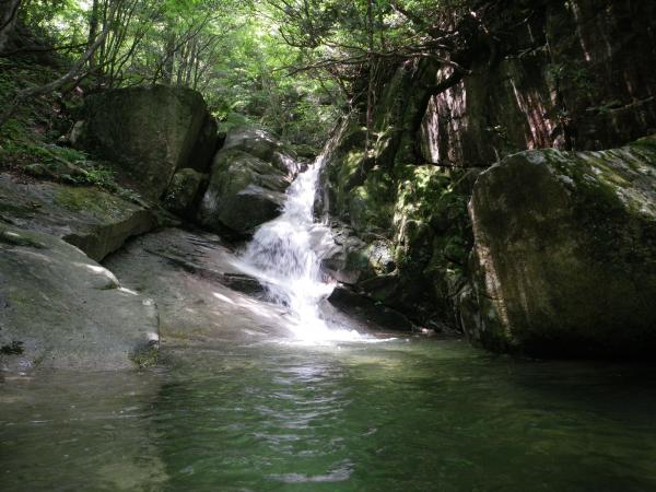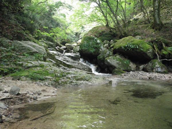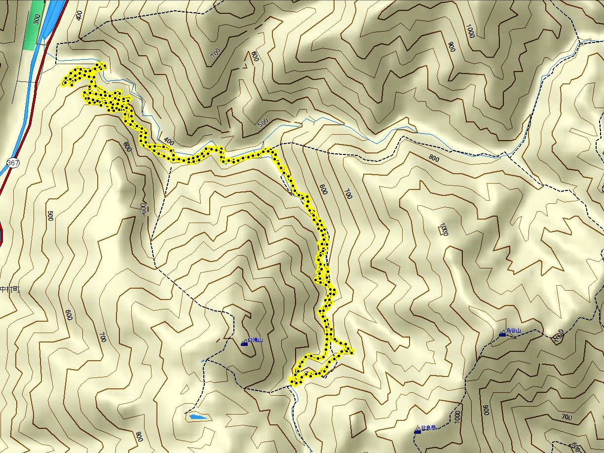 - 駐車スペース-33分-牛コバ-2分-林道終点-17分-入渓地点-50分-白滝-33分-夫婦滝(出渓地点)-4分-御堂-27分-入渓地点-8分-林道終点-27分-駐車スペース