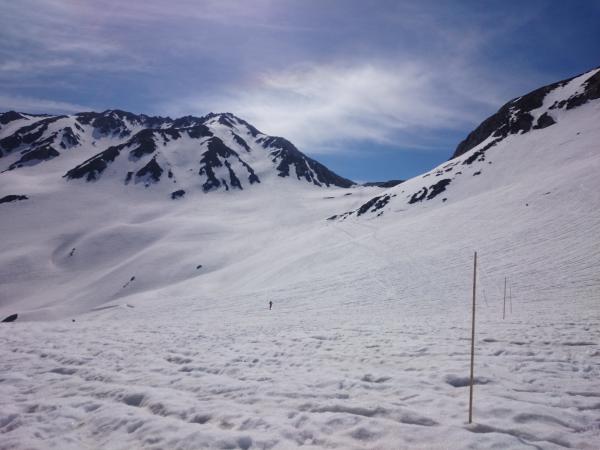 快晴の予報の立山。今回室堂周辺は風も無く直射日光がとても暑く感じられましたが、稜線に出ると冷たい風が強く吹いておりとても寒かったです。どんな状況になってもいいように皆さんしっかりと準備なさってください。
