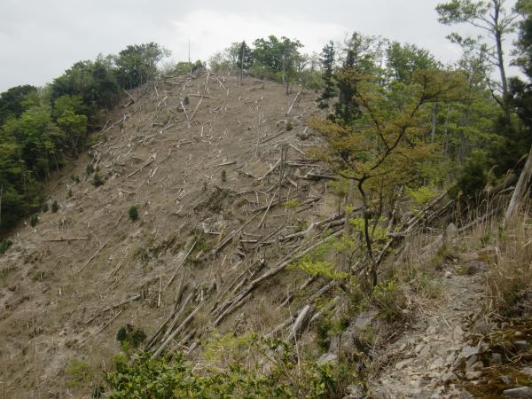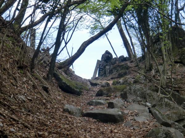 - 林道終点登山口==(10分)==法華岩==(10分)==岳滅鬼峠==(50分)==第3ピーク(岳滅鬼岳)==(15分)==岳滅鬼山山頂