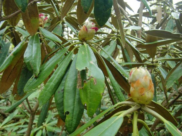 それでも付いている蕾はかなり膨らみ始めていましたので、もう少ししたらキレイな石楠花の森になると思います。
