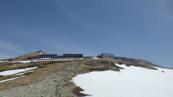 山頂や山頂から白馬山荘までの道は雪がなく、山頂でアイゼンを外しました。