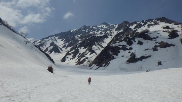 大雪渓は雪が柔らかくなっていたのでツボ足で下山。