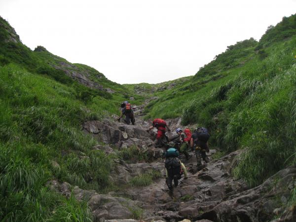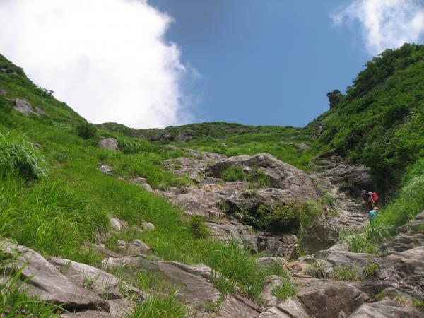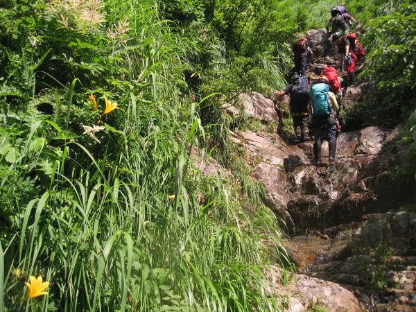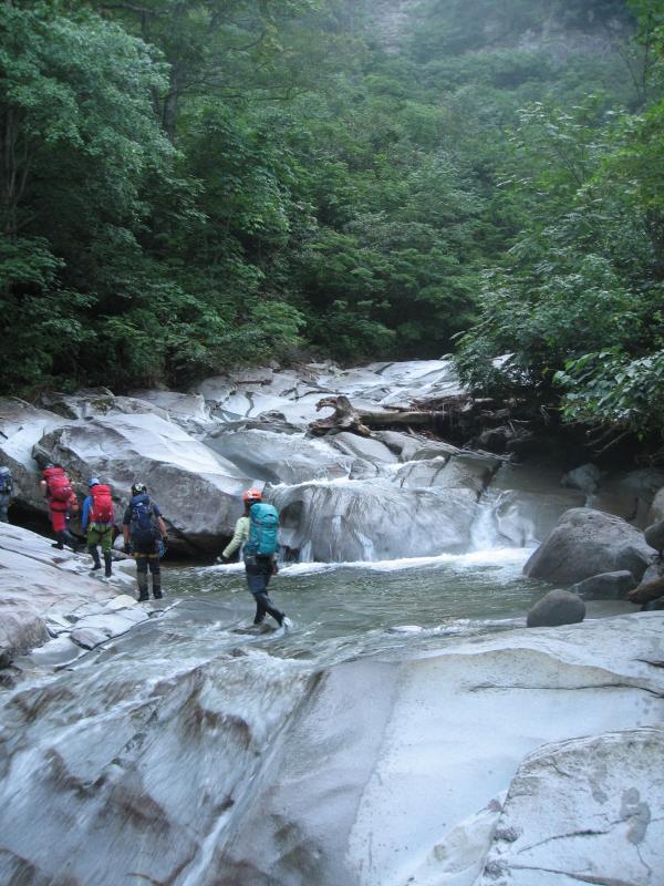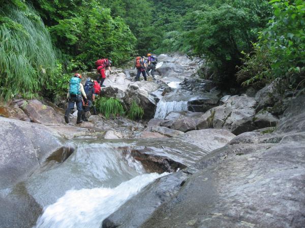 - 特に荒れているところもなく、巻き道も出合も分かりやすい。きれいなナメが多く、滝も適度にあり気持ちよい。そして詰めは源流部のササ原に爽快に突き上げる上越らしいスラブになっており岩登りに近い。下山は白毛門登山ルートを下るが、岩あり、木の根っこありで滑りやすく、転びやすいのでゆっくり。