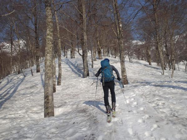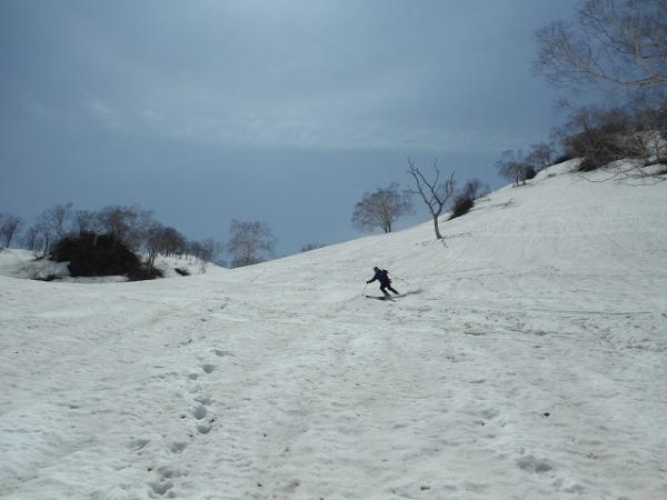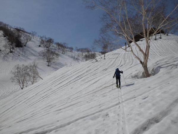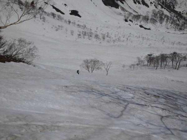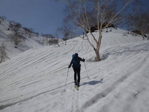 入ります。 天候が良すぎたせいで、深い溝が多くありスキーも快適とは言えませんでした