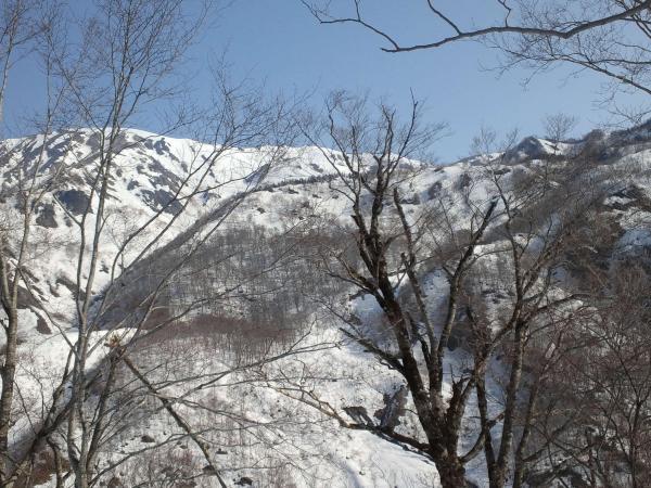 - 融雪が進み、有名なコース 白馬沢、金山沢 などは見るも無残な