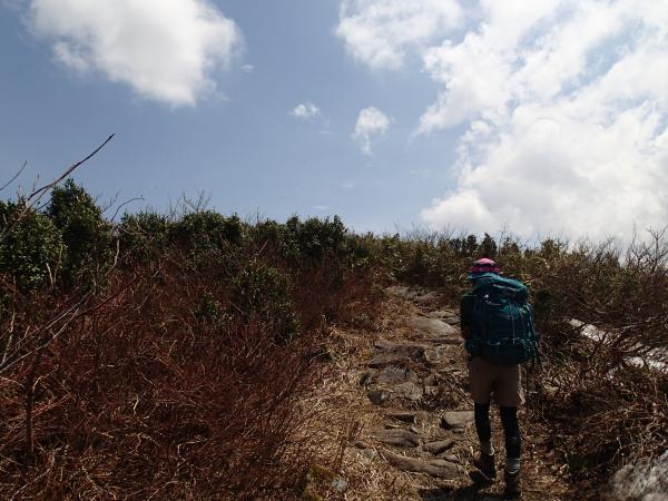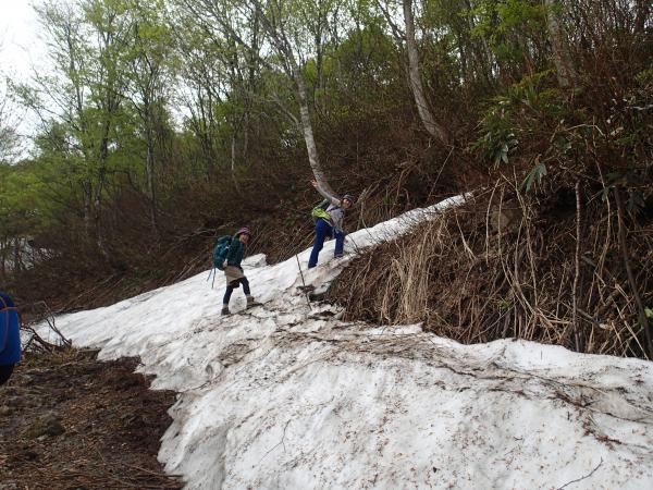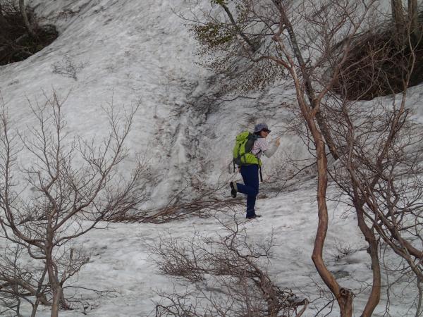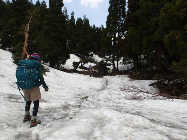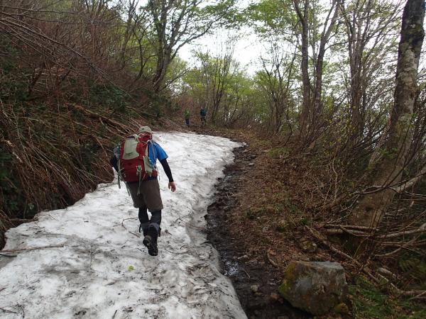 - 所々に残雪あり。 慎重に歩けばアイゼンなしでも平気ですが、