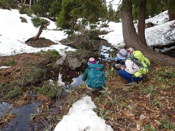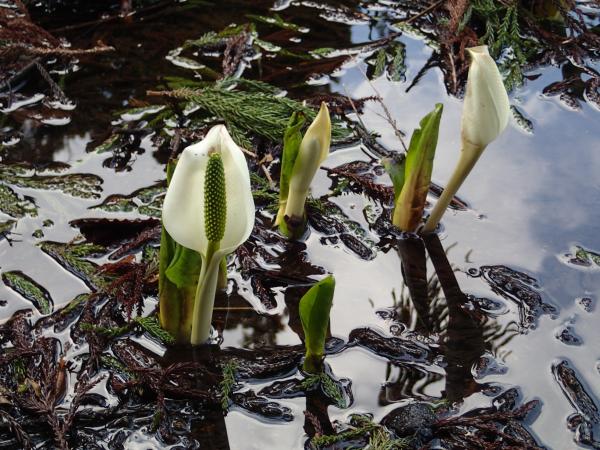 そして山頂から少し降りた先の水芭蕉の群生地はまだほとんどが蕾でしたが、それもまた美しく。