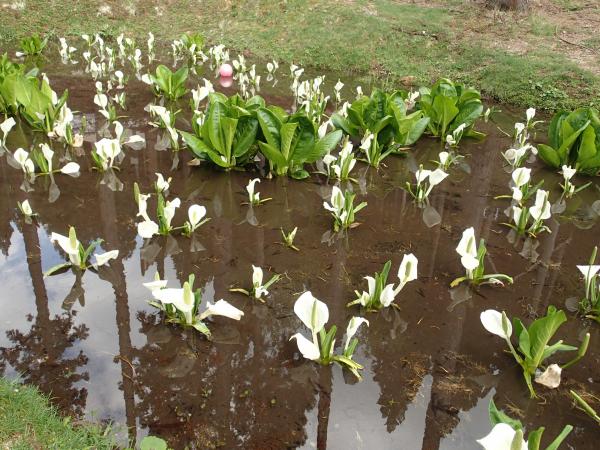 駐車場下のいこいの森の池の水芭蕉は見頃を迎えてましたが、