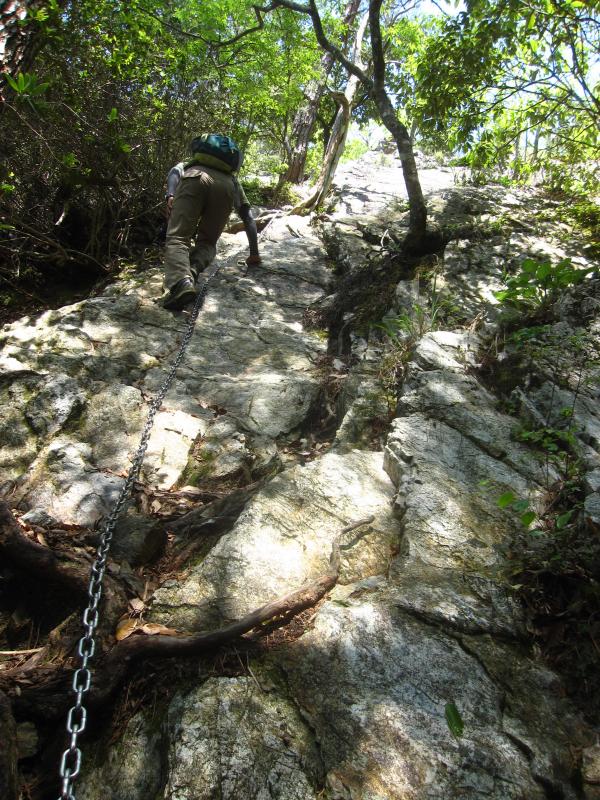 - シャレ滝まで、急な登りがあります。その後の岩場は鎖が付いています。