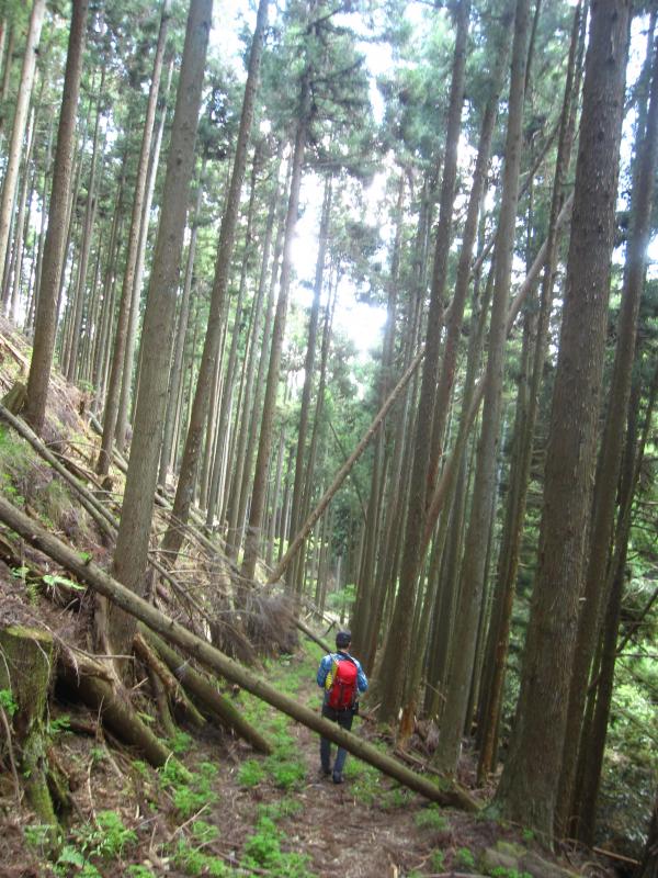 上筱見集落への下山道は、あまり歩かれていないようで、道が荒れています。
