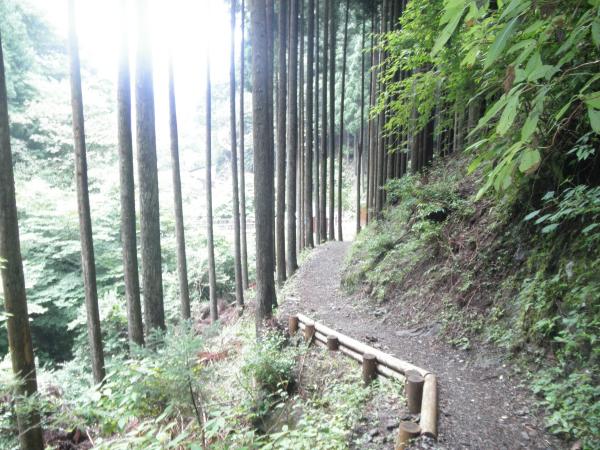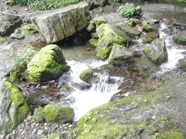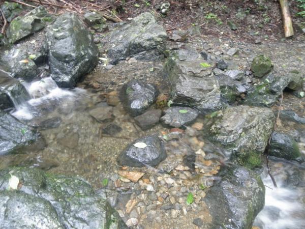 下りは川の横をずっと歩くコースなので、水音が涼しげでした。橋の板の隙間から渓流が見えてどきっとしたり、前日少し雨が降ったようで、川が増水していて飛び石の要領で渡ったりと、なかなか楽しめるコースでした。
