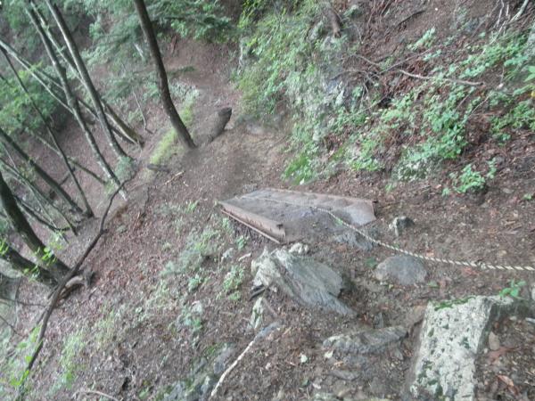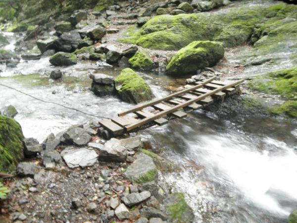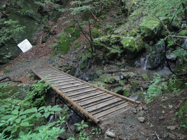 川苔山から滝へ下りるコースは、滝の直前、梯子がいくつかあって滑りやすい。滝を過ぎたあとも、ぐらぐらするような橋がたくさんあるので、滑らないように。
