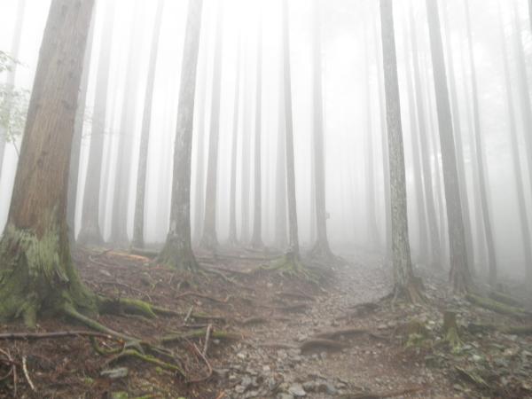 川苔山山頂は天望がいいとのことですが、あいにくの曇り、ガスもかかってであまり見えませんでした。
