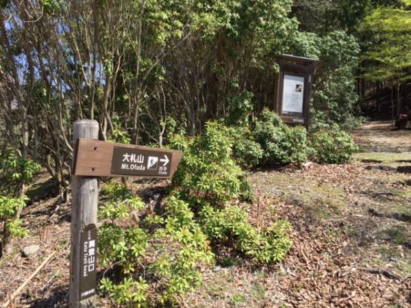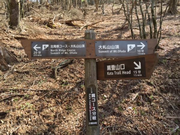 - 大札山肩登山口(25分)肩コース分岐看板左へ(10分)アカヤシオ郡生地(50分)北尾根登山口(30分)大札山肩登山口(25分)分岐看板右へ(10分)大札山山頂(25分)大札山肩登山口