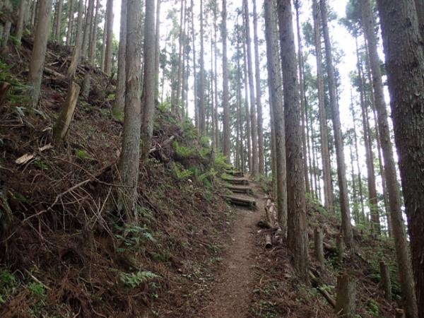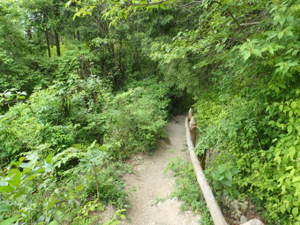 - 登山口(10分)天ヶ滝分岐(2分)天ヶ滝(3分)天ヶ滝分岐(50分)伏見峠(35分)山頂広場(30分)伏見峠(50分)登山口