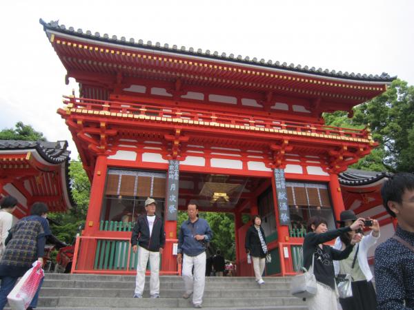 帰り道は、古い商店街を通り、祇園の町を抜け八坂神社にお参りしました。