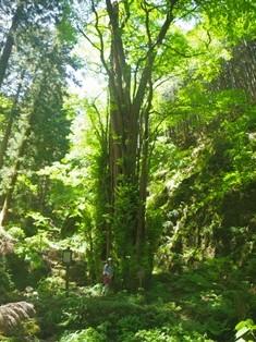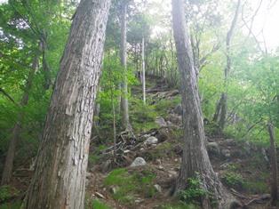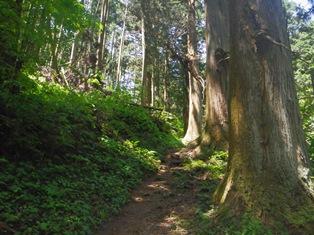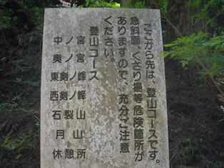 - 加蘇山神社→35分→千本けやき→20分→休憩所→10分→奥ノ宮→20分→尾根→15分→東剣ヶ峰→50分→石裂山→10分→月山→60分→分岐→30分→加蘇山神社
