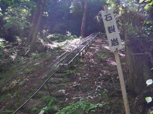 加蘇山神社(←同じ名前で字が違う『賀蘇山神社』と間違えないよう注意)に車を停め沢沿いを進んでいきます。途中の推定樹齢1000年の古木「千本かつら」は必見。そこをすぎ中ノ宮へ出るといよいよ鎖のお出まし。のっけからぶっとい鎖が迎えてくれます(古い手作り感満載の鎖も掛かってます)足場手がかりはしっかりしているのでウォーミングアップに最適!?手摺の付いた階段を上がり奥ノ宮へ上がって今日の無事を祈ります。 さてここからが本番…木の根っこを掴んでよじ登りハシゴ階段でガンガン下りまた登り…を何度か繰り返し稜線へ(やっと道は幅のある登山道に出てホッ)しかし…東剣ノ峰,西剣ノ峰,石裂山山頂はハシゴ階段が無かった時は何処を歩いたんだろう???と思うほどの急な岩場につけられたハシゴを登り下りの連続です。石裂山山頂ではツツジの蕾がありましたからもう少ししたら見ごろでしょうね。