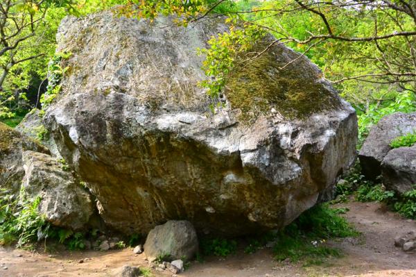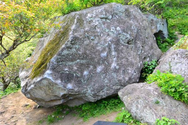 幕山公園から少し登ると右手ベンチの奥に米粒岩が見えます。