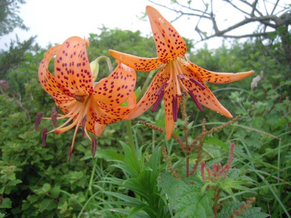 シシウド・カワラナデシコ・ハクサンフウロ・シモツケソウ・オオバギボウシ・クガイソウ・ルリトラノオ・イブキトラノオ・クサフジ・キリンソウ・コオニユリ・ツリガネニンジン等々の花が咲いていました。