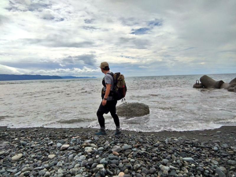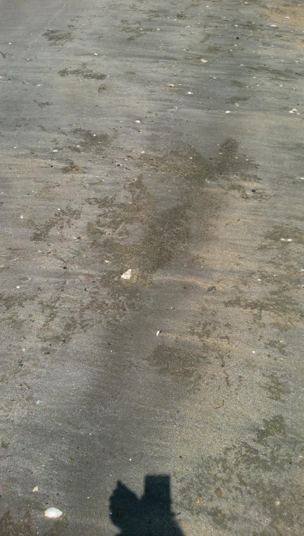 海の中の道は砂地だけでなく、岩盤の場所もあり、しっかりとした靴でないと足元が不安。