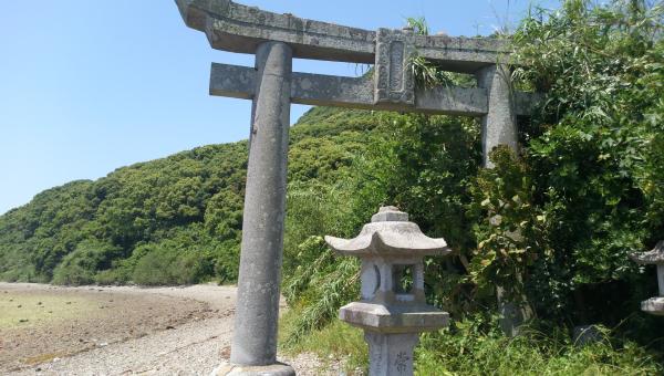 - 駐車場==(20分)==高杢島入口鳥居==(25分)==天草富士山頂