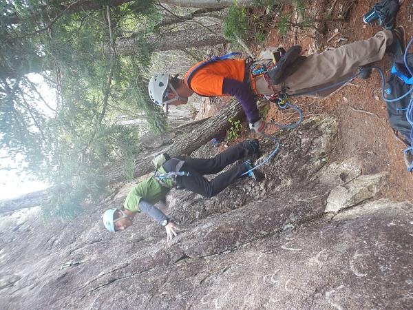さらに上部の10aを2本。手にやさしめの花崗岩でしたが残置の終了点がボロボロなところも多くありました。安全を確保してみんなで交代しながら登り終了。