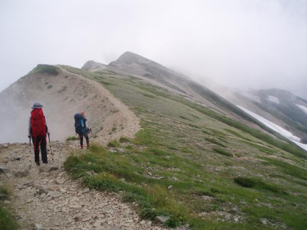白馬大池小屋からはずーっと稜線になります。天気が良いと遠くまで見渡せ、気持ちよく歩けるとは思いますが、雷には要注意な場所です。特に危険箇所はないのですが、道が狭いので、すれ違いには注意しましょう。