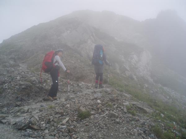 - 前日まで雨だったせいもあるのか、栂池自然園から天狗原までは水たまりがあったりと、ドロドロでした。天狗原から先はガレ場になるので、足下に気をつけながら行きます。