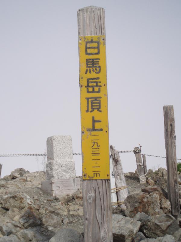 白馬岳山頂は生憎のガスで視界は不良…風はちょっとヒンヤリしましたが、ここで出会った方とおしゃべりしたり、写真を撮ったりと楽しく過ごします。初対面の方とも親しくなれるのが山の良いところでもありますよね。